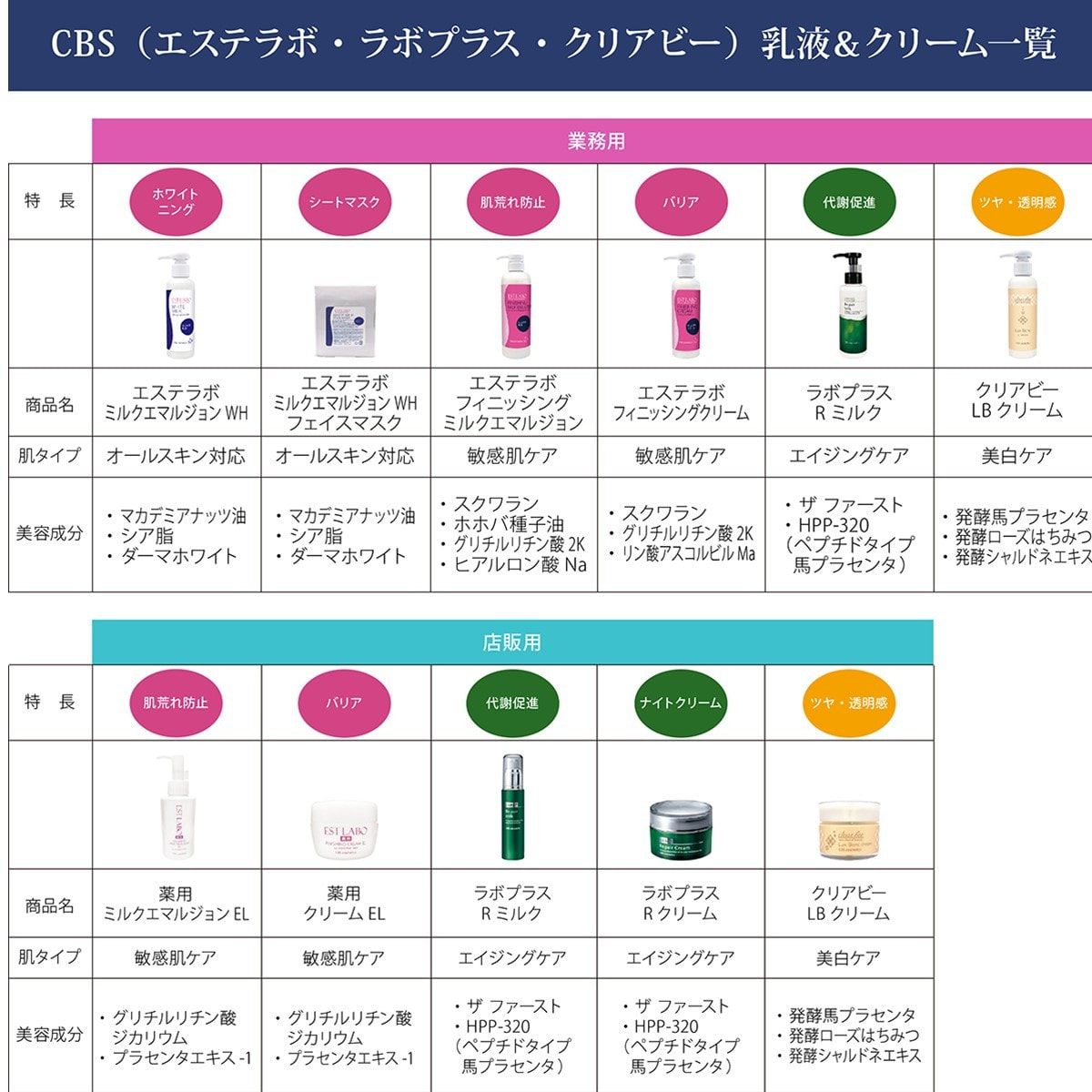 〈有効成分〉グリチルリチン酸2K/プラセンタエキス-1〈その他の成分〉精製水、1,3-ブチレングリコール、ホホバ油、濃グリセリン、ステアリン酸、ラベンダー水、スクワラン、パルミチン酸セチル、モノステアリン酸ポリオキシエチレンソルビタン、自己乳化型モノステアリン酸グリセリル、リン酸L-アスコルビルマグネシウム、コメヌカスフィンゴ糖脂質、水溶性コラーゲン液(1)、ヒアルロン酸ナトリウム(2)、アロエエキス(2)、オトギリソウエキス、カモミラエキス(1)、トウキンセンカエキス、シナノキエキス、ヤグルマギクエキス、ローマカミツレエキス、シア脂、天然ビタミンE、L-アルギニン、水素添加卵黄レシチン、卵黄リゾホスファチジルコリン、カルボキシビニルポリマー、1,2-オクタンジオール