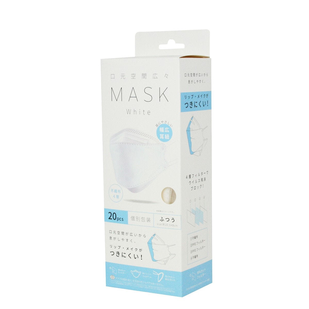 商品名:口元空間広々マスク ホワイト 20枚入り(個包装)