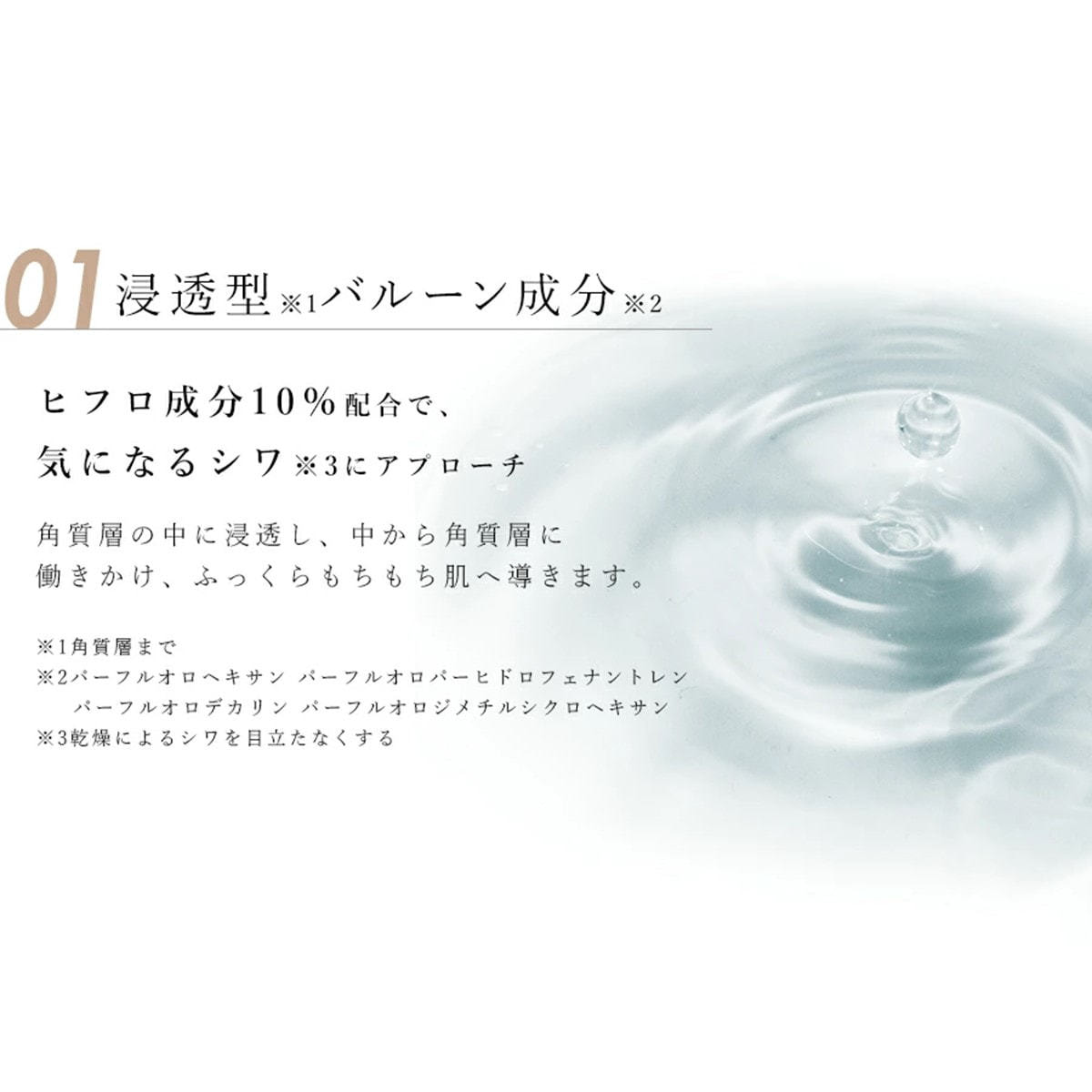 水、グリセリン、トリエチルヘキサノイン、パーフルオロヘキサン、BG、ダマスクバラ花水、スクワラン、グリコシルトレハロース、ペンチレングリコール、パーフルオロパーヒドロフェナントレン、加水分解水添デンプン、パーフルオロデカリン、ジグリセリン、トレハロース、変性コーンスターチ、ベヘニルアルコール、アラキジルアルコール、シア脂、ステアリン酸グリセリル、パルミチン酸エチルヘキシル、パンテノール、ステアリン酸、バチルアルコール、ペンタステアリン酸ポリグリセリル-10、パーフルオロジメチルシクロヘキサン、アラキルグルコシド、加水分解キャッサバ塊茎エキス、カルボマー、ヒドロキシプロピルメチルセルロースステアロキシエーテル、水酸化K、ステアロイルラクチレートNa、トリ(カプリル酸/カプリン酸)グリセリル、レシチン、デュナリエラサリナエキス、マンダリンオレンジ果皮エキス、ペンテト酸5Na、ジメチルシリル化シリカ、サッカロミセス/コメ発酵液、パントラクトン、ヒアルロン酸Na、パルミトイルトリペプチド-5、マルトデキストリン、ウンカリアトメントサエキス、3-ラウリルグリセリルアスコルビン酸、ケイ酸Na、アルテロモナス発酵エキス、トリフルオロ酢酸テトラデシルアミノブチロイルバリルアミノ酪酸ウレア、パルミトイルジペプチド-5ジアミノブチロイルヒドロキシトレオニン、塩化Mg、クエン酸、ソルビン酸K、安息香酸Na、エチルヘキシルグリセリン、トコフェロール、フェノキシエタノール、香料