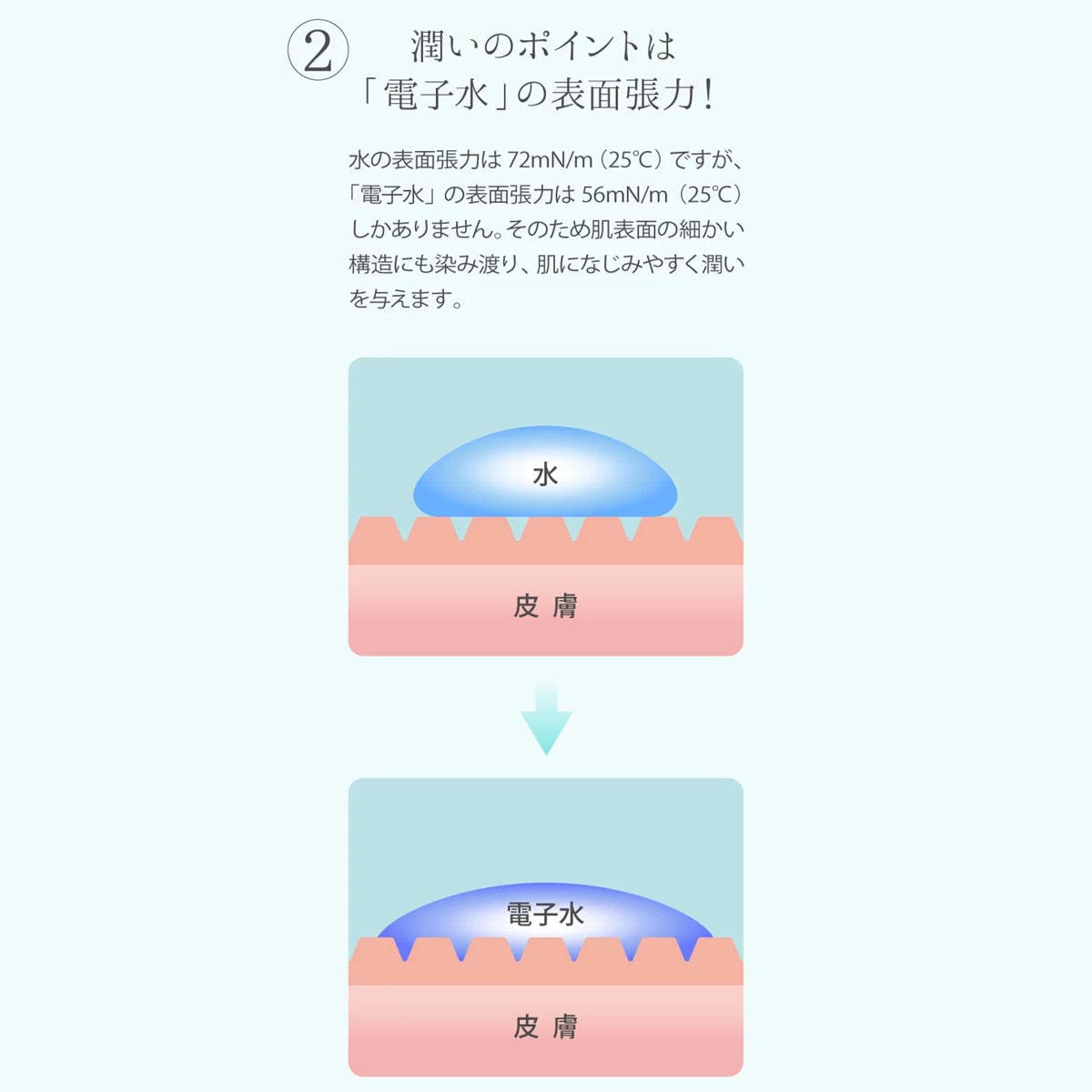 主成分に、注目のエイジングケア成分「NMN(ニコチンアミドモノヌクレオチド)」と、ヒト幹細胞培養液を採用し、優れた浸透力の電子水で超高浸透を実現。
