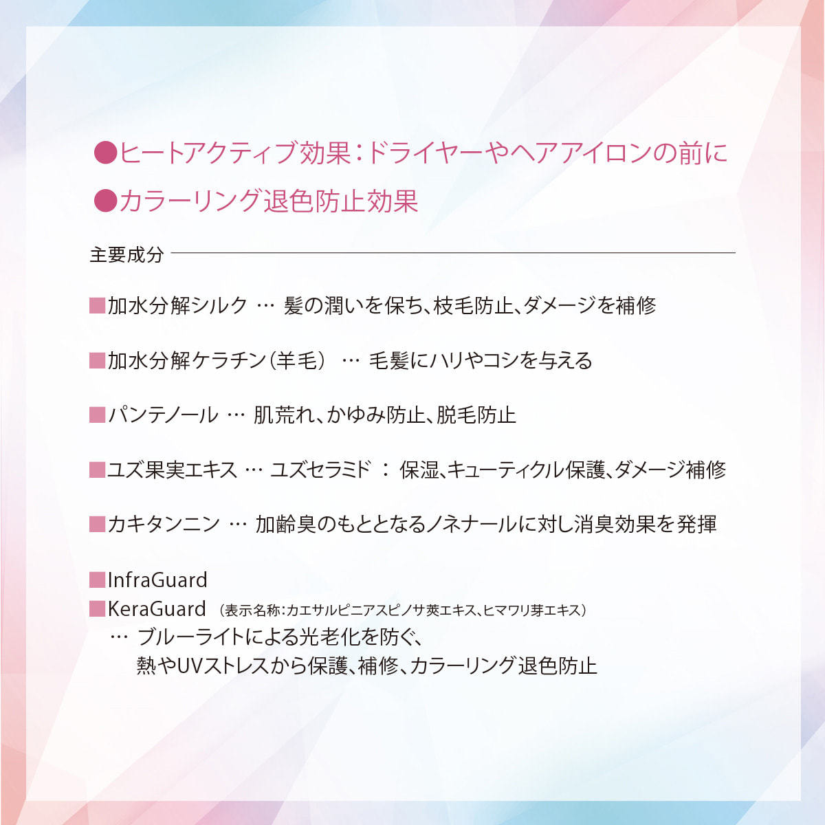 ●ヒートアクティブ効果:ドライヤーやヘアアイロンの前に