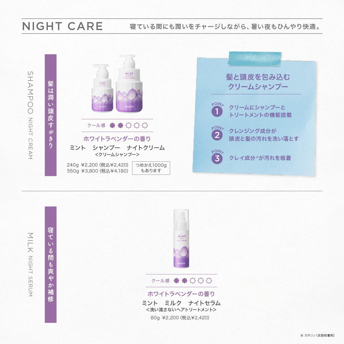 リフレッシュに最適なインバスケアから、寝ている合う打もヘアケアできるナイトケア、