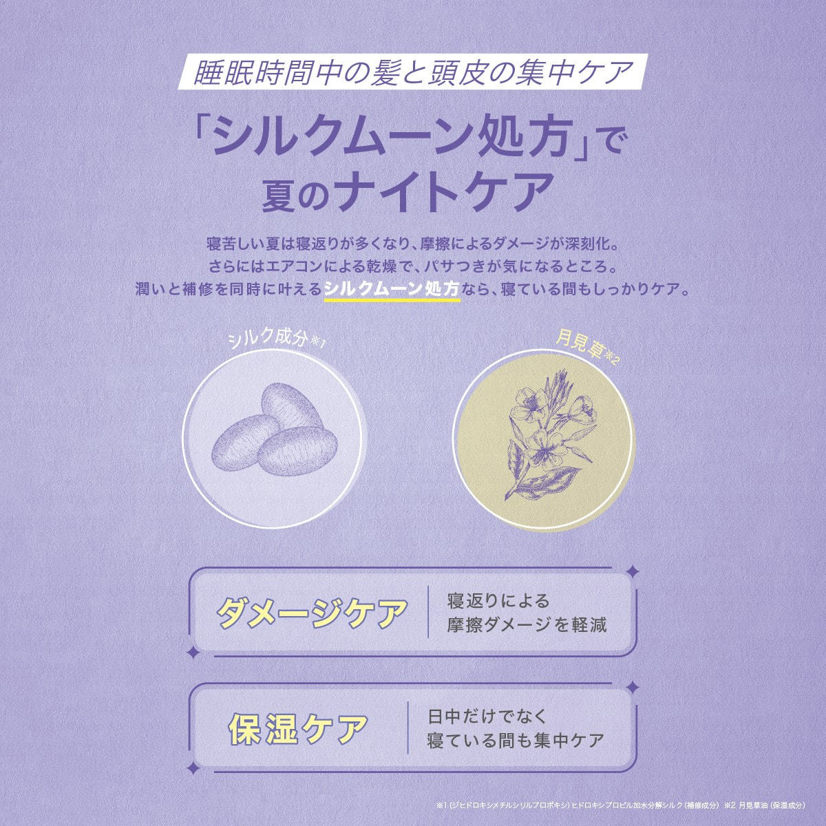 「シルクムーン処方」により、髪を補修し、翌朝まで潤いをキープ。