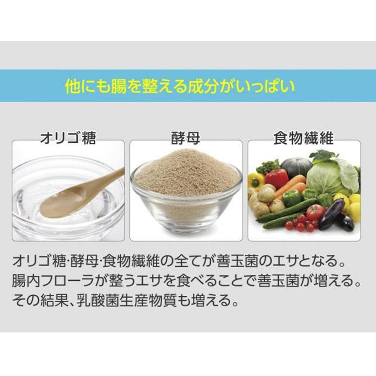 【原材料名】フラクトオリゴ糖(国内製造)、乾燥ビール酵母末、難消化性デキストリン、穀物発酵エキス末、ビフィズス菌末(デキストリン、ビフィズス菌殺菌末)、乳酸菌生産物質末(大豆、乳酸菌)/微粒二酸化ケイ素、増粘安定剤(プルラン)
