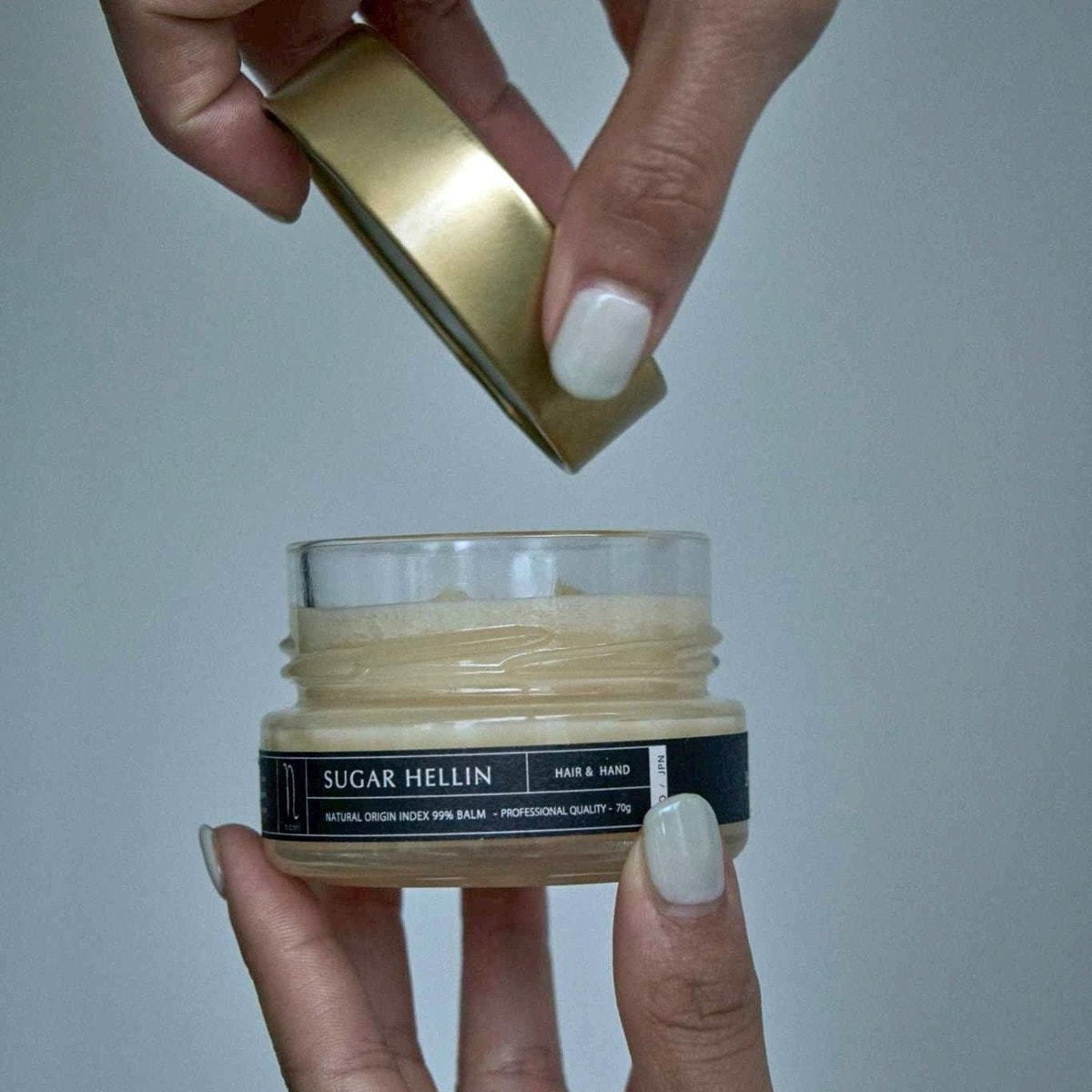 手のひらにでシュガーへリンを伸ばし、髪に手櫛を通すことで理想な毛流れを作ります。