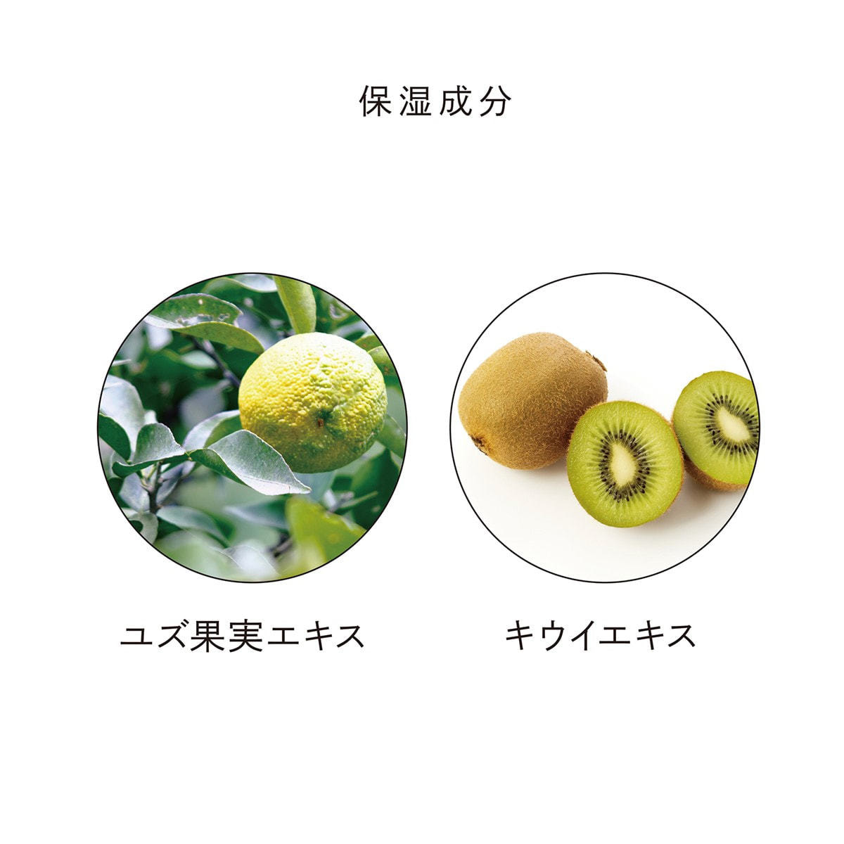 水、BG、(カプリル酸/カプリン酸)PEG-6グリセリズ、マンニトール、EDTA-2Na、ユズ果実エキス、キウイエキス、セトリモニウムブロミド