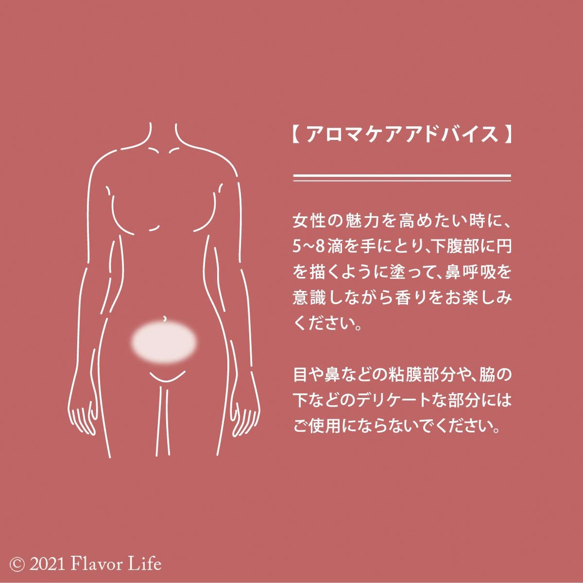 2~3滴を体に直接塗って、鼻呼吸を意識しながら香りをお楽しみください。