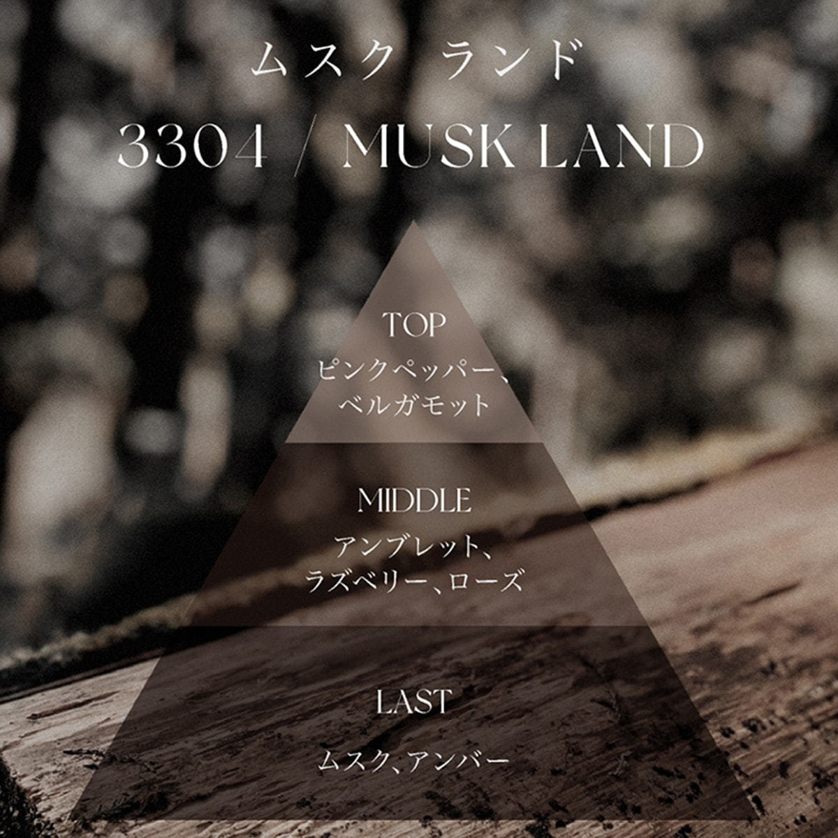 ベースノート:アンバー、ムスク、サンダルウッド、シダー