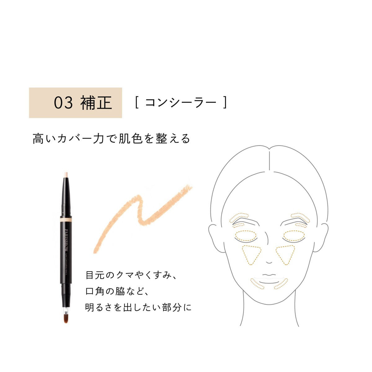 01 影 フェイスラインや⿐筋の横、⽣え際など 奥⾏きや深みを演出したい部分に