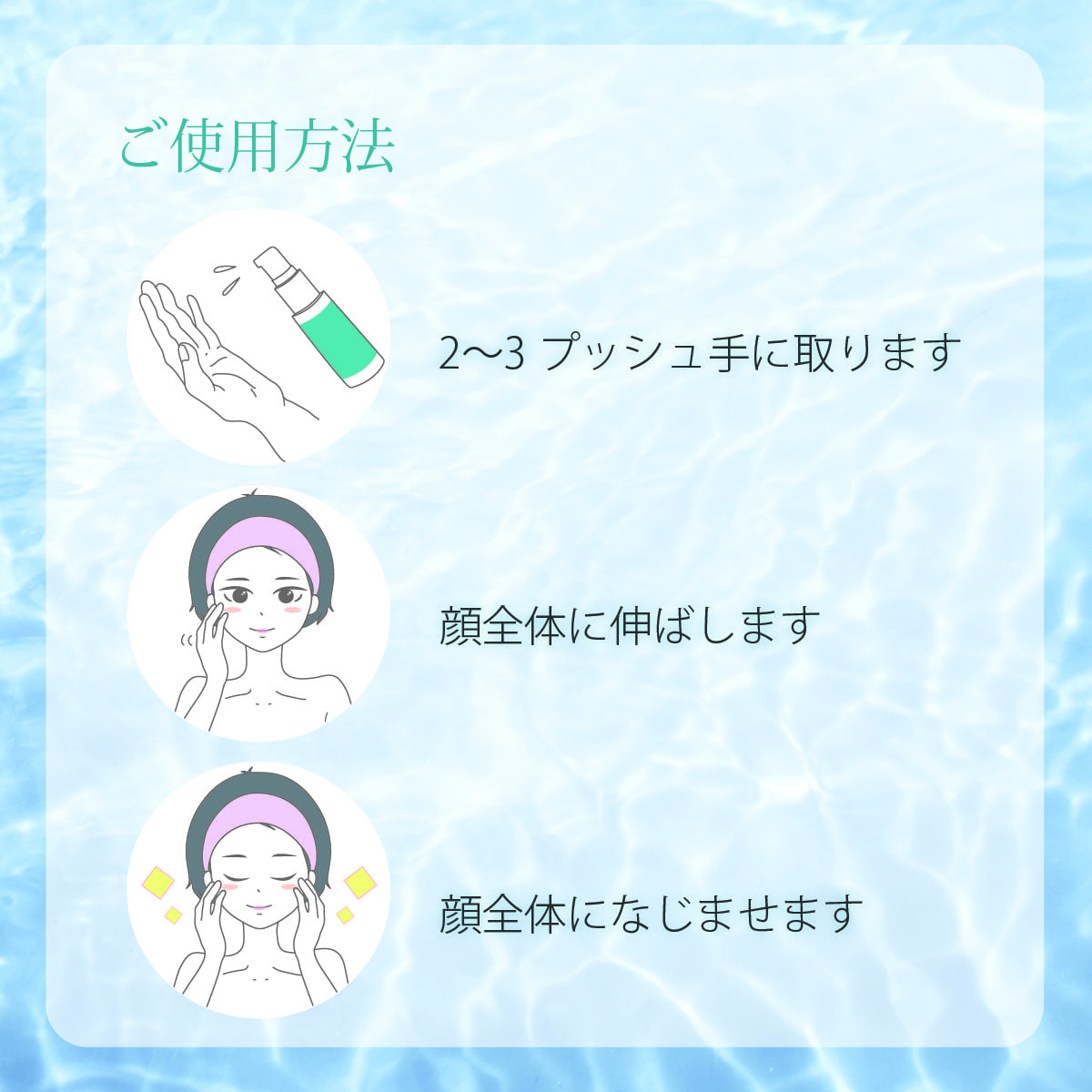 3.顔全体になじませます。(気になるところに部分的にもお使いいただけます。)