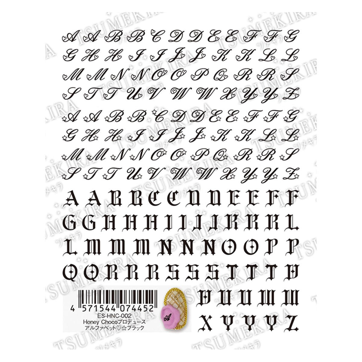 商品番号:0000000000043121 商品コード:207196 商品名:ツメキラ Honey Chocoプロデュース アルファベット ハートスター ブラック ES-HNC-002 お届け目安:2026-03-06