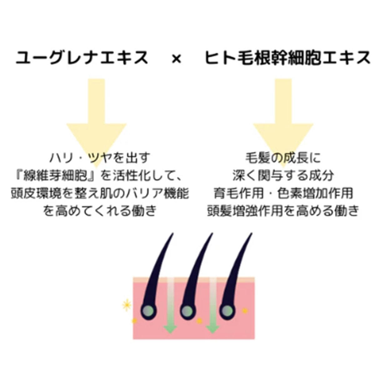 水、セタノール、ステアラミドプロピルジメチルアミン、ステアリルアルコール、パルミチン酸エチルヘキシル、乳酸、加水分解水添デンプン、ヒト毛根幹細胞順化培養液、ユーグレナエキス、メドウフォーム-δ-ラクトン、ヒドロキシプロピルトリモニウム加水分解ケラチン(羊毛)、γ-ドコサラクトン、ダイマージリノール酸ジ(イソステアリル/フィトステリル)、ダイマージリノール酸ダイマージリノレイル、PPG-3カプリリルエーテル、ラウラミノプロピオン酸Na、セバシン酸ジエチル、BG、1,2-ヘキサンジオール、クエン酸、トコフェロール、フェノキシエタノール、香料