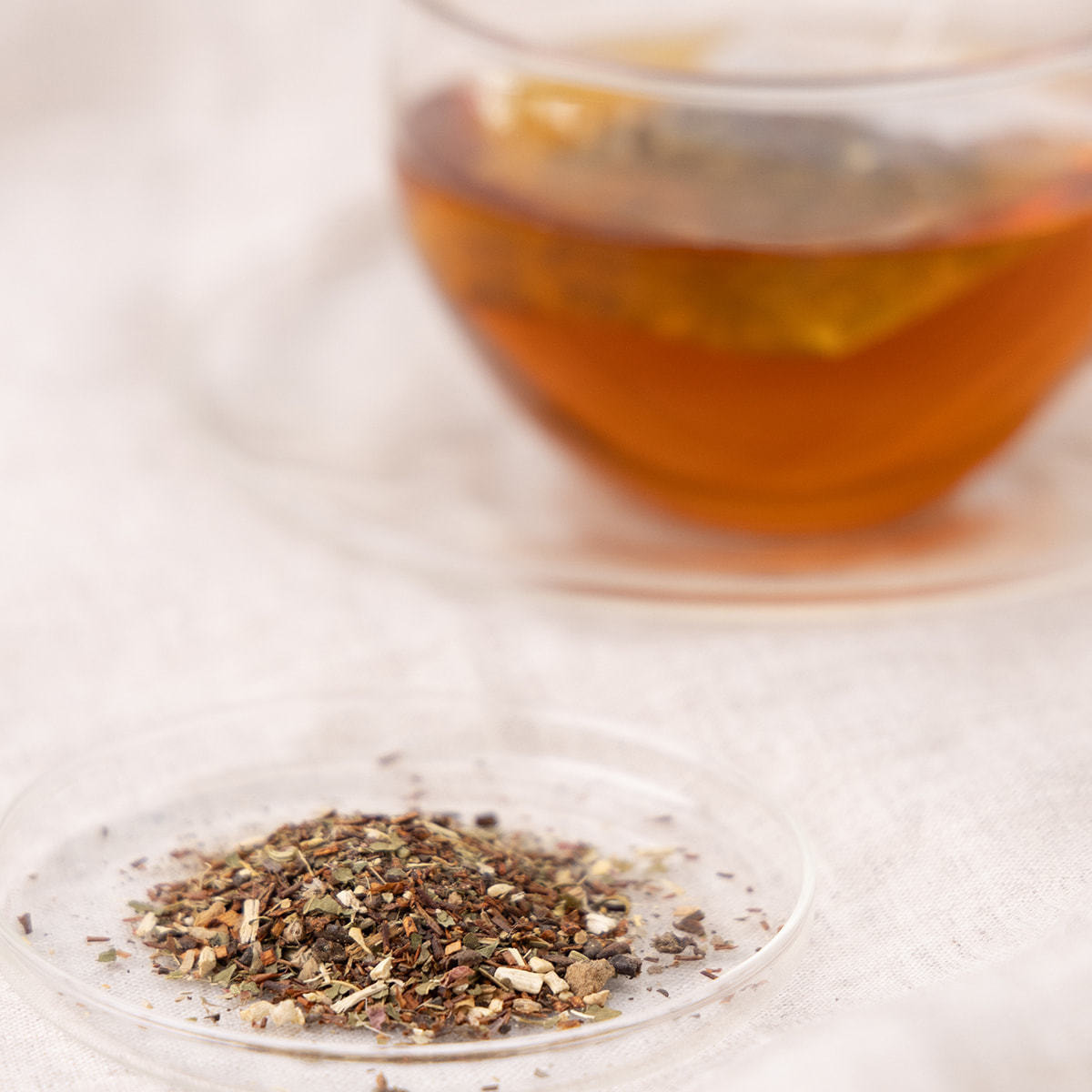 ルイボスティー(南アフリカ)、桑の葉、ハブ茶、よもぎ、杜仲茶、ジンジャー、リコリス、月見草、ナツメ、ナタマメ、蓮葉、ローズレッド、フェンネル、リンデン、えぞうこぎ