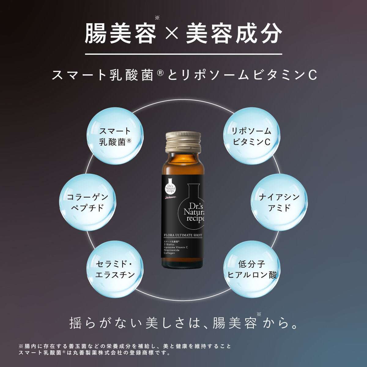 スマート乳酸菌®などの注目成分をはじめ、ドクターズナチュラルレシピが厳選した腸壁吸収成分*1を配合。