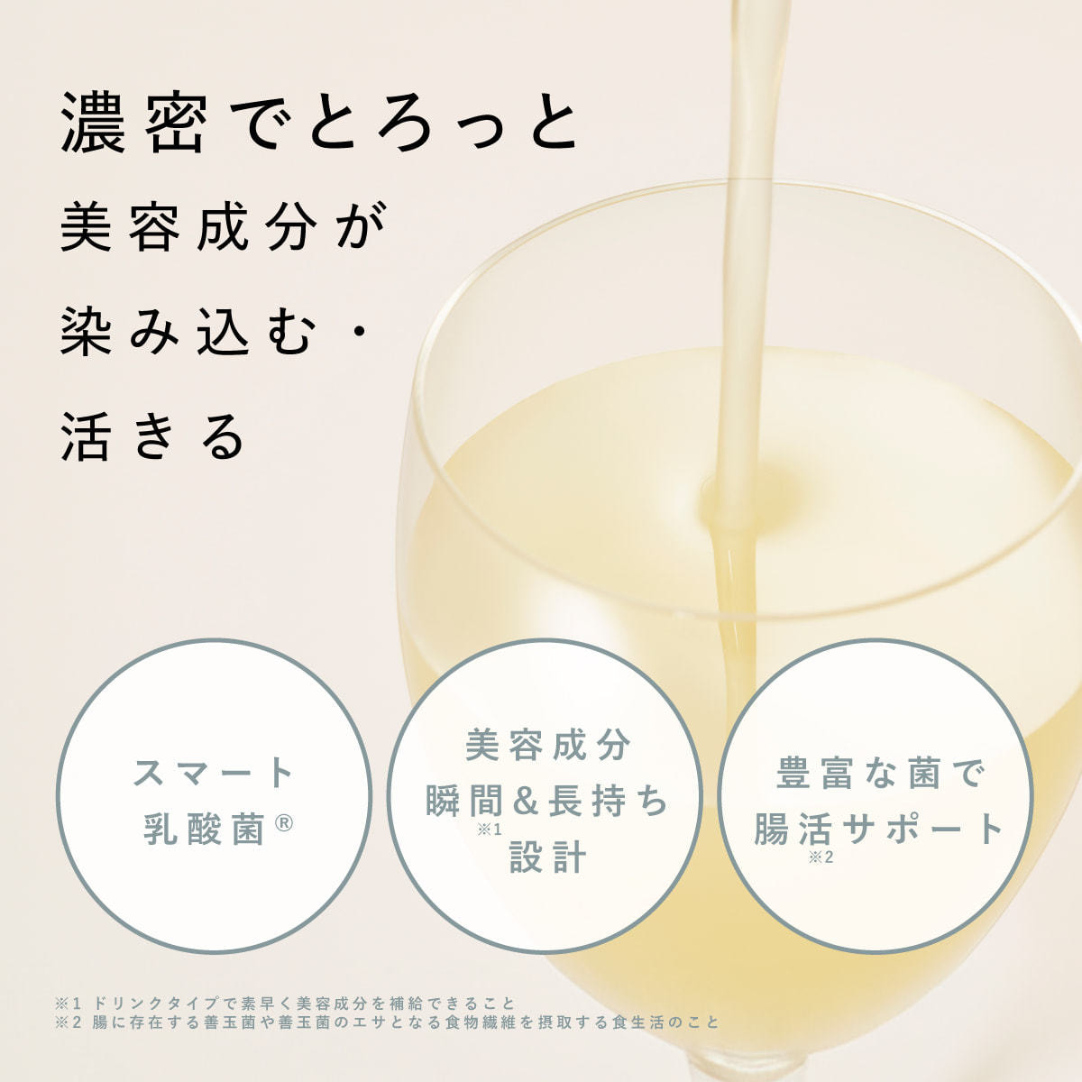 腸活*2しながら美容成分を摂取することで「明日の美を呼び覚ます、揺るがないキレイ」に導きます。