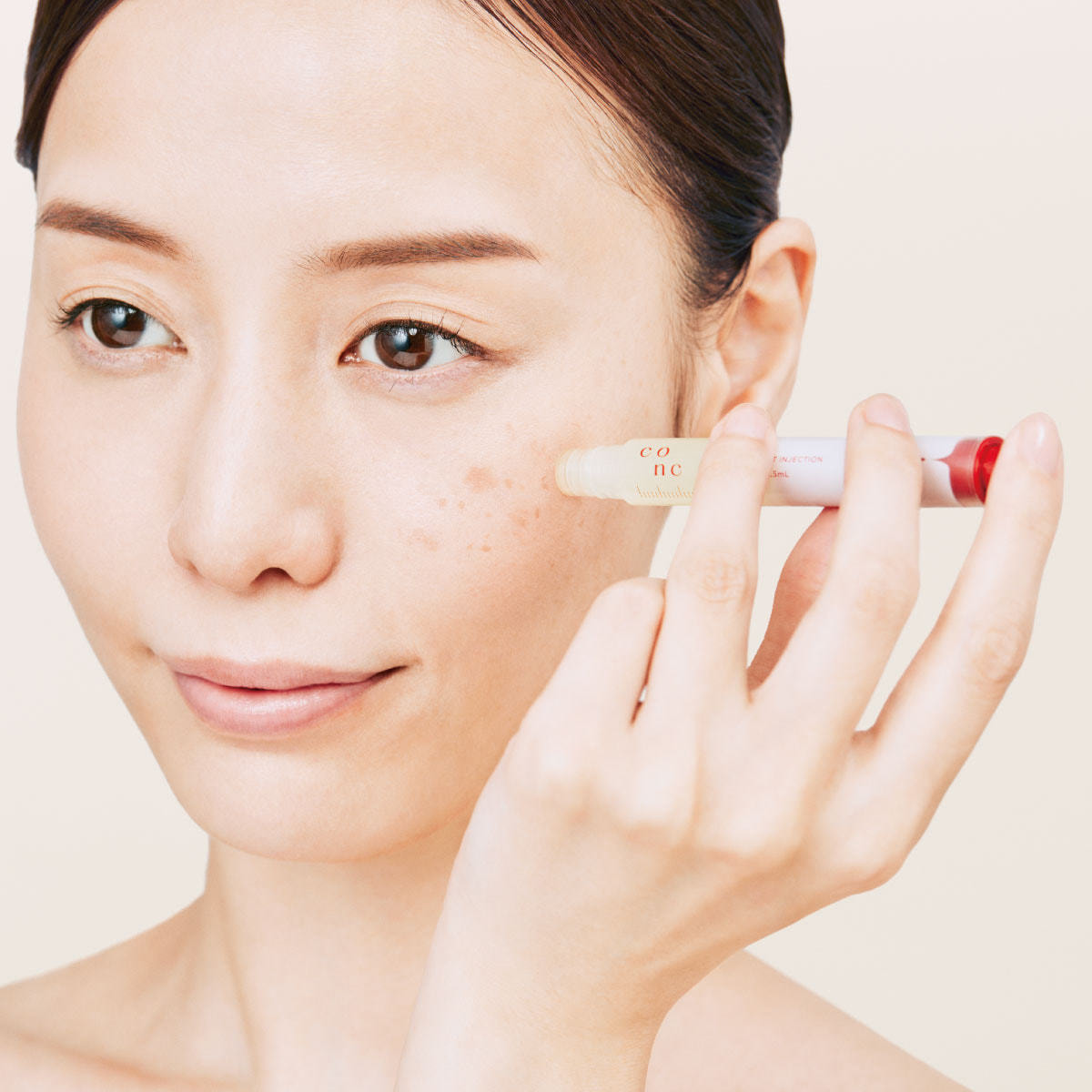 注入*¹型美容液最高濃度*¹¹のナイアシンアミド*²を10%配合し、30代以上の肌悩み*¹²で上位に位置する「くすみ*⁴」、「色ムラ」、「乾燥」にアプローチ。