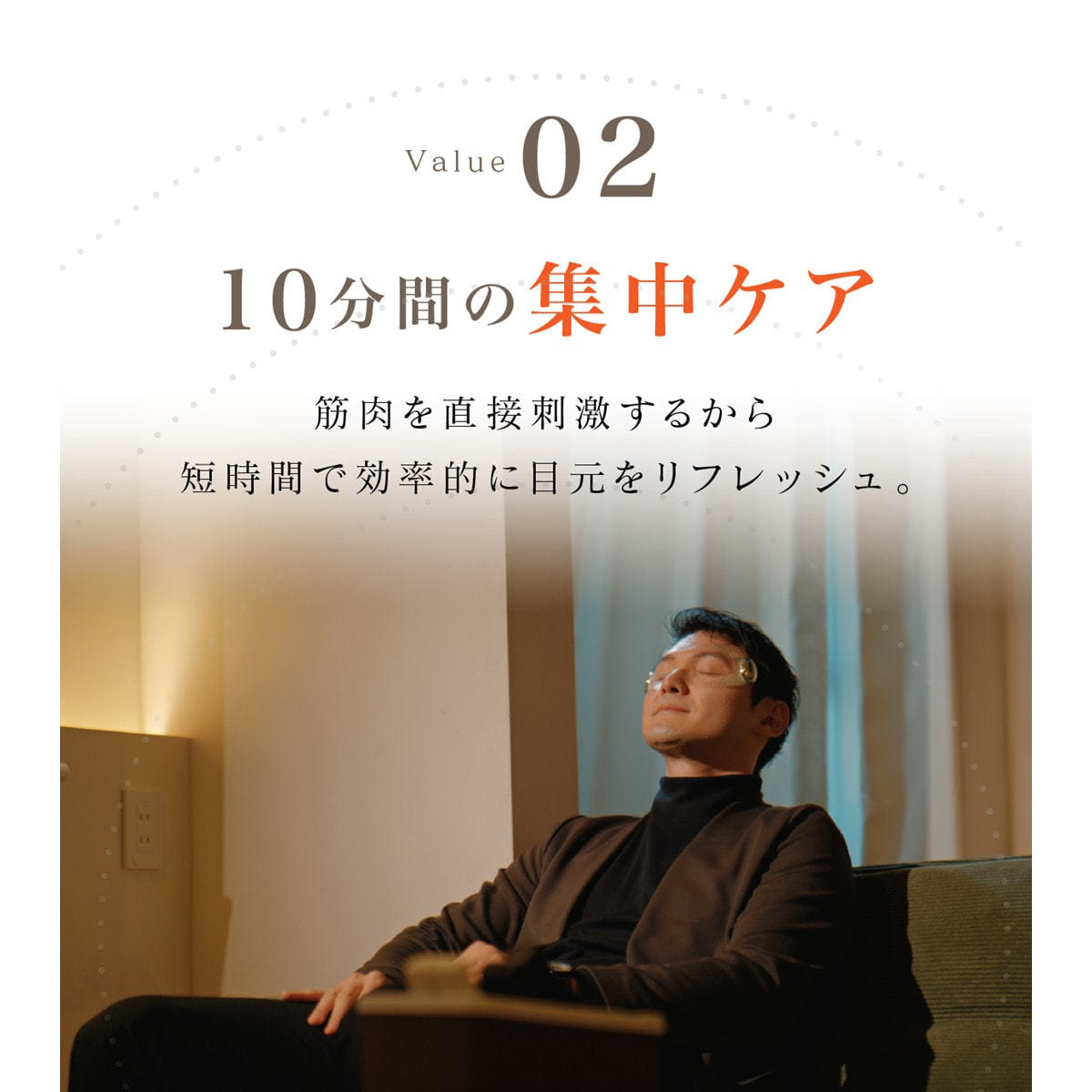 眼精疲労、むくみ、まぶたの重さなど、現代人の目元の悩みに対し、目元周りの筋肉にダイレクトに刺激を与えることにより、根本からのアプローチを実現します。