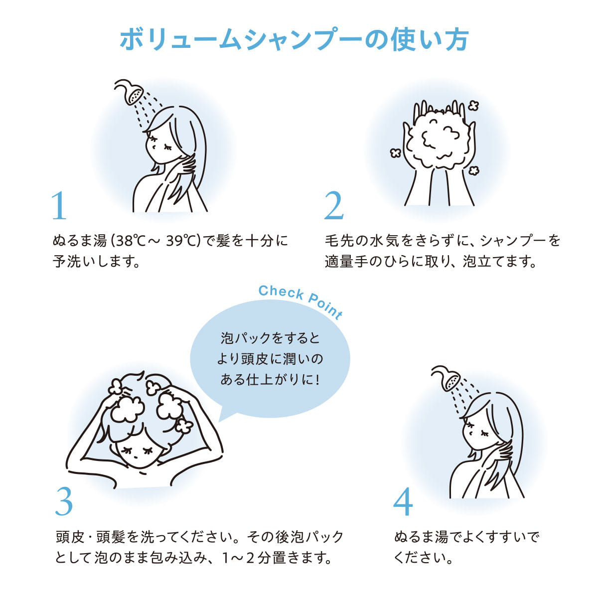 肌フローラに着目した頭皮バリアケア成分※が頭皮のキメを整えて、ふっくらとハリのある状態に導きます。泡パックを行うことで潤いとツヤを実感。