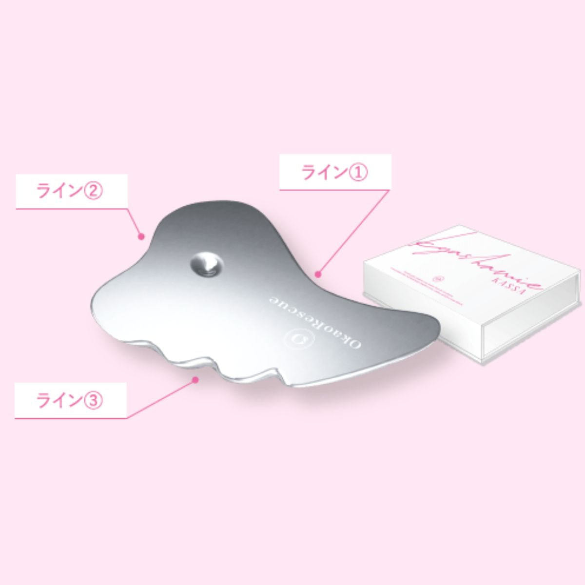 ライン①をお顔の内側にフィットさせ、外に向かってやさしく滑らせます。