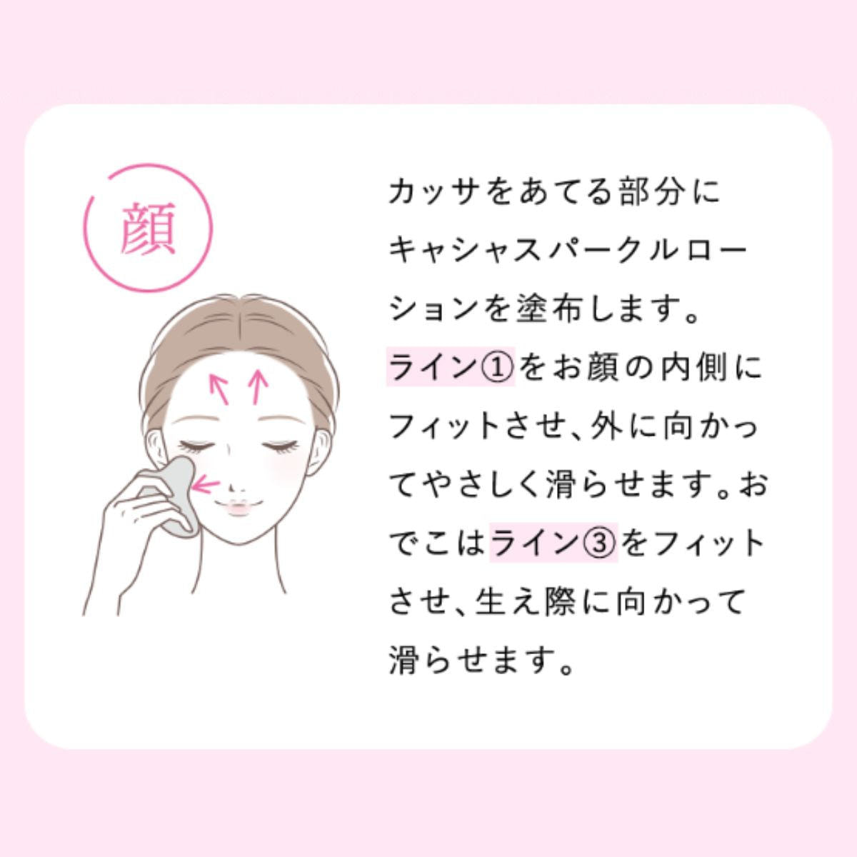 カッサをあてる部分にキャシャスパークルローションを塗布します。