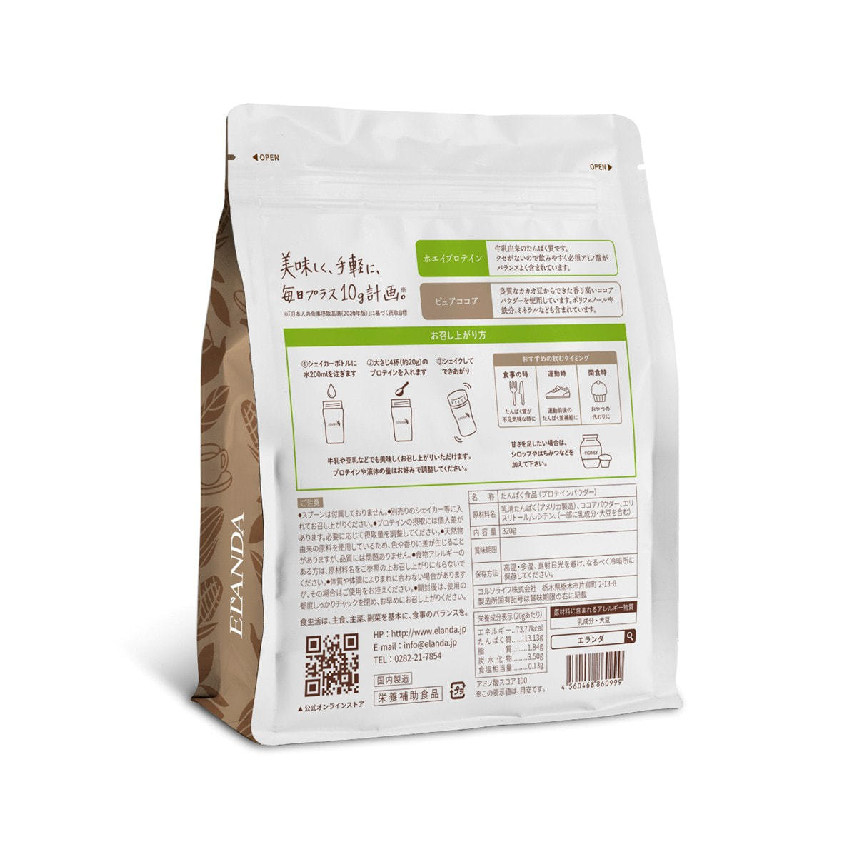 商品名:エランダ ホエイプロテイン ココア風味 320g